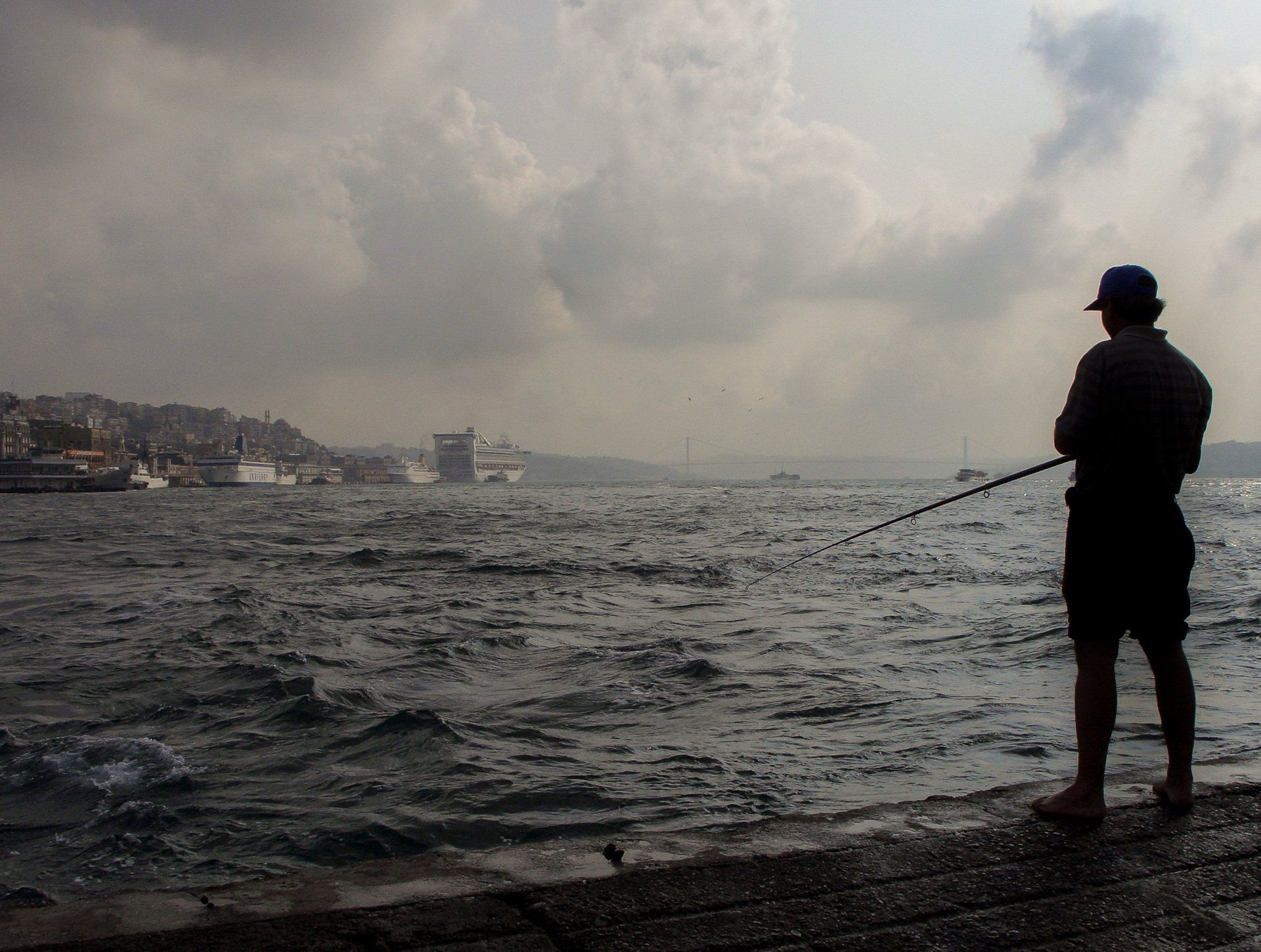 Aber der Bosporus ist eben auch eine Tankerroute mitten durch Istanbul, ein vielerorts schmuziges Gewässer, ein Windkanal, der die Kaltluft des Schwarzen Meeres gnadenlos durch die Stadt bläst. Einer Stadt, die erstickt im alltäglichen Verkehrschaos hunderttausender Autos. Die stolzen Türme und Minarette der historischen Gebäude sind eingekreist von den Einheitsbauten aus gepfuschtem Billigbeton oder protzigen Glastürmen der neuen Unternehmer-Elite.