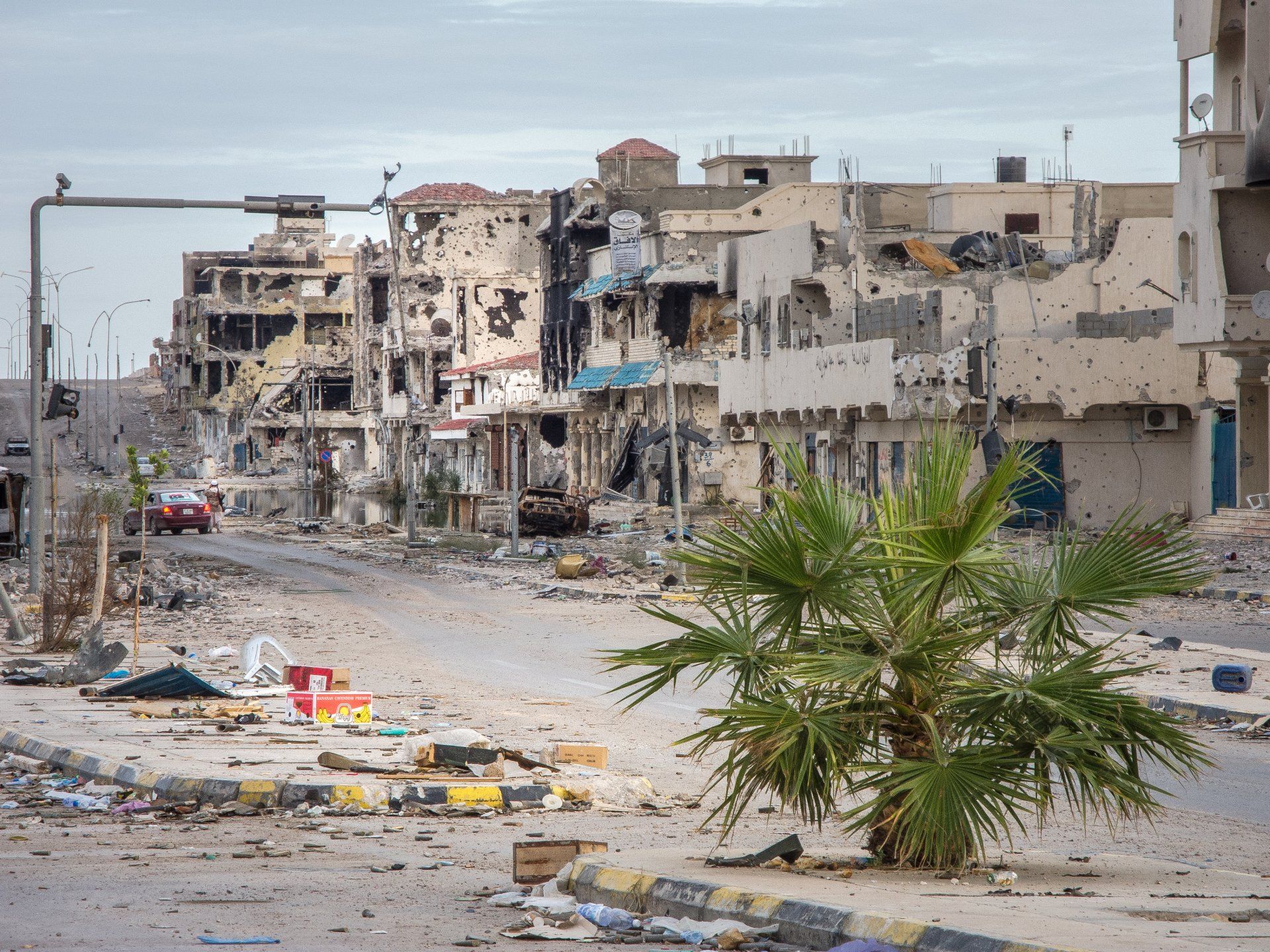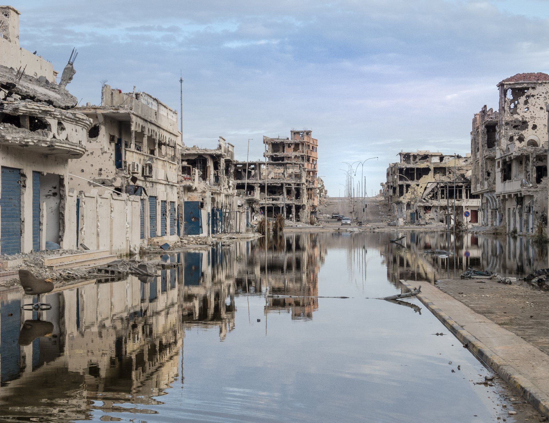 Die meisten Aufnahmen stammen aus den beiden libyschen Küstenstädten Misrata und Sirte, deren Zerstörung viel über den Bürgerkrieg in Libyen aussagt.