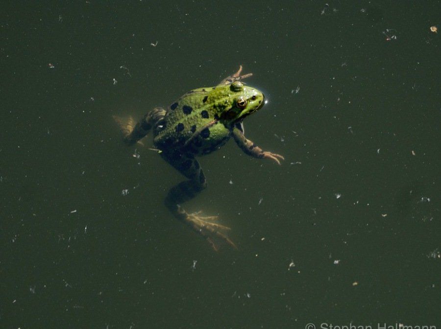"schreckhafter Frosch". Kaum noch ein überstürzter Kopfsprung ins rettende Wasser. Manche blinzelten nur gelangweilt mit ihren runden Froschaugen, wenn man am Teich vorbeispazierte, und dösten einfach unbeeindruckt weiter - manchmal im halben Dutzend aufeinanderliegend - in der Sonne. Wo soll das hinführen?