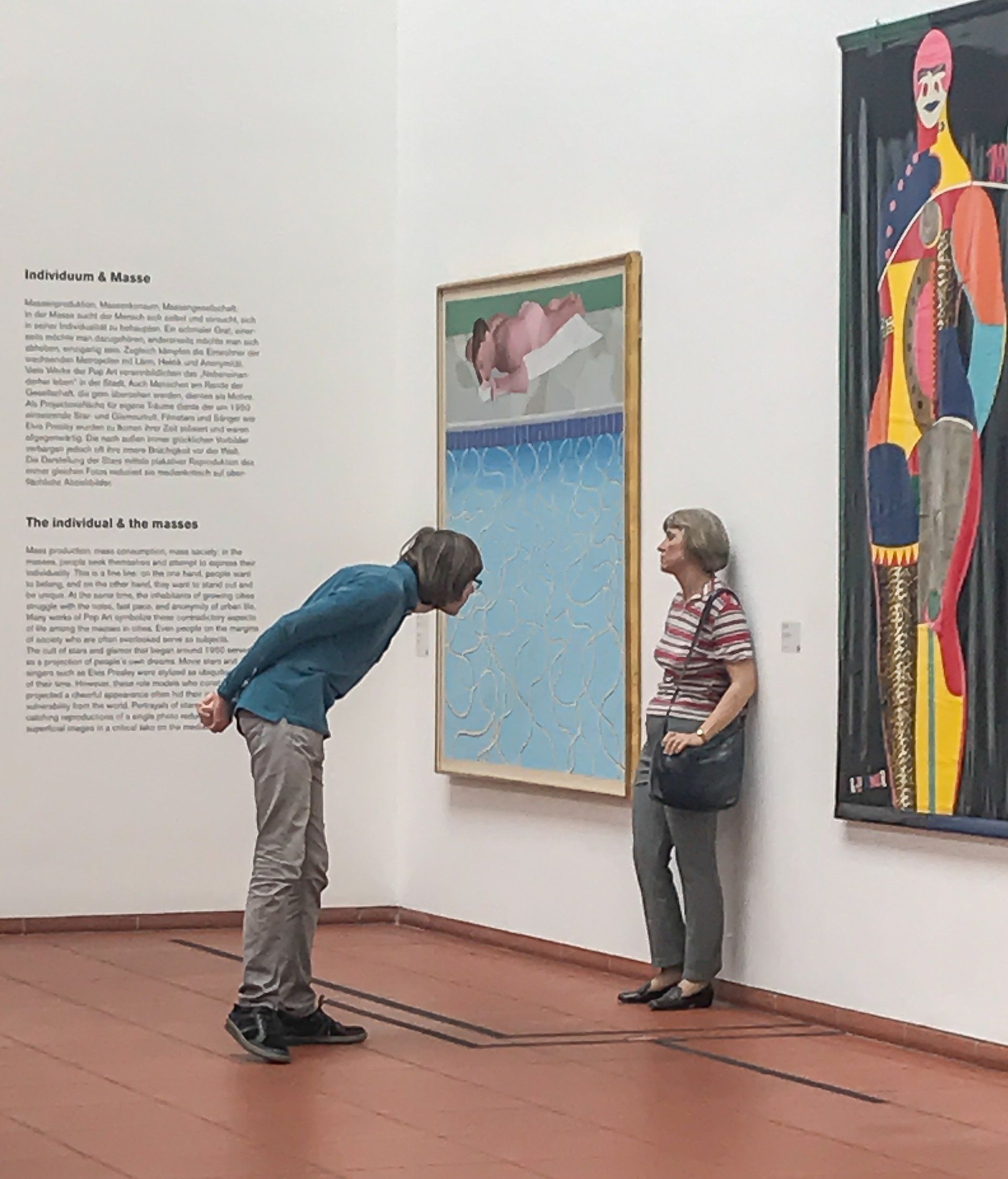Was wären Museen, was ihre Exponate ohne die Menschen, die kommen, um sie zu sehen? Selbst ein Friedhof lebt von seinen Besuchern. Wie viel mehr noch also die Kunstwerke, die unterhalten, vielleicht auch provozieren, davon leben, die Blicke des Betrachters gefangen zu nehmen. Sein artiges Verweilen, die Aufmerksamkeit und Anerkennung, die er einem Künstler zollt. Die eigene Pose gegenüber dessen Werk. Und manchmal auch nur das Flanieren vor den zur Schau gestellten „Stilleben“. Mensch und Kunst geraten im Museum in eine gewisse Art von Interaktion. Sie alle sind Teil der Show, Besucher und Betrachter werden Teil der Inszenierung. Das gefällt mir so am Museum und ist einen Blick wert.