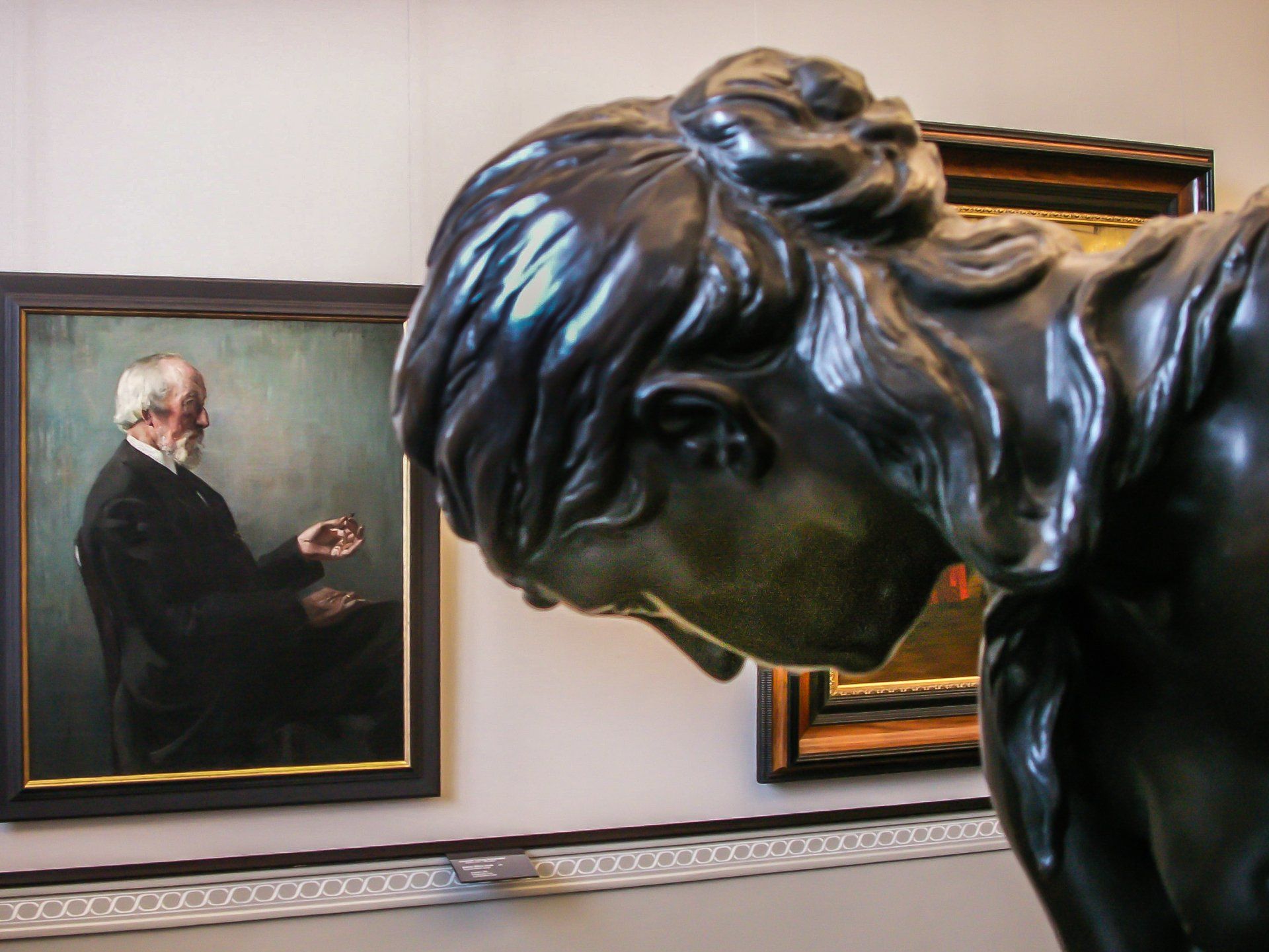 Doch Museen sind vor allem auch ein phantastischer Ort des Zusammentreffens verschiedener Elemente: Der Komposi-tion von Kunstwerken, was schon für sich oft ein optischer Genuss ist, wie sie zusammenspielen, die Werke verschiede-ner Künstler, verschiedener Schaffensperioden, verschiedener Ausdrucksform und Formgebung. Es gibt wunderbare Blickwinkel des Zusammenspiels von Plastik und Malerei. Ein nicht zu unterschätzender Teil der Attraktivität besteht in der Ästhetik der Präsentation, dem Arrangement der Kunstwerke, der Harmonie mit oder dem Kontrast zur Architektur des Museums.
